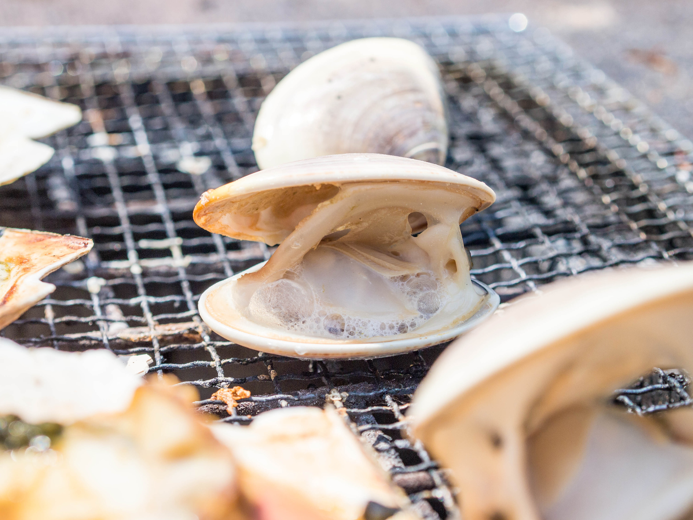 貝類はハマグリ、ホンビノス貝、サザエ、ホタテ等、串焼...