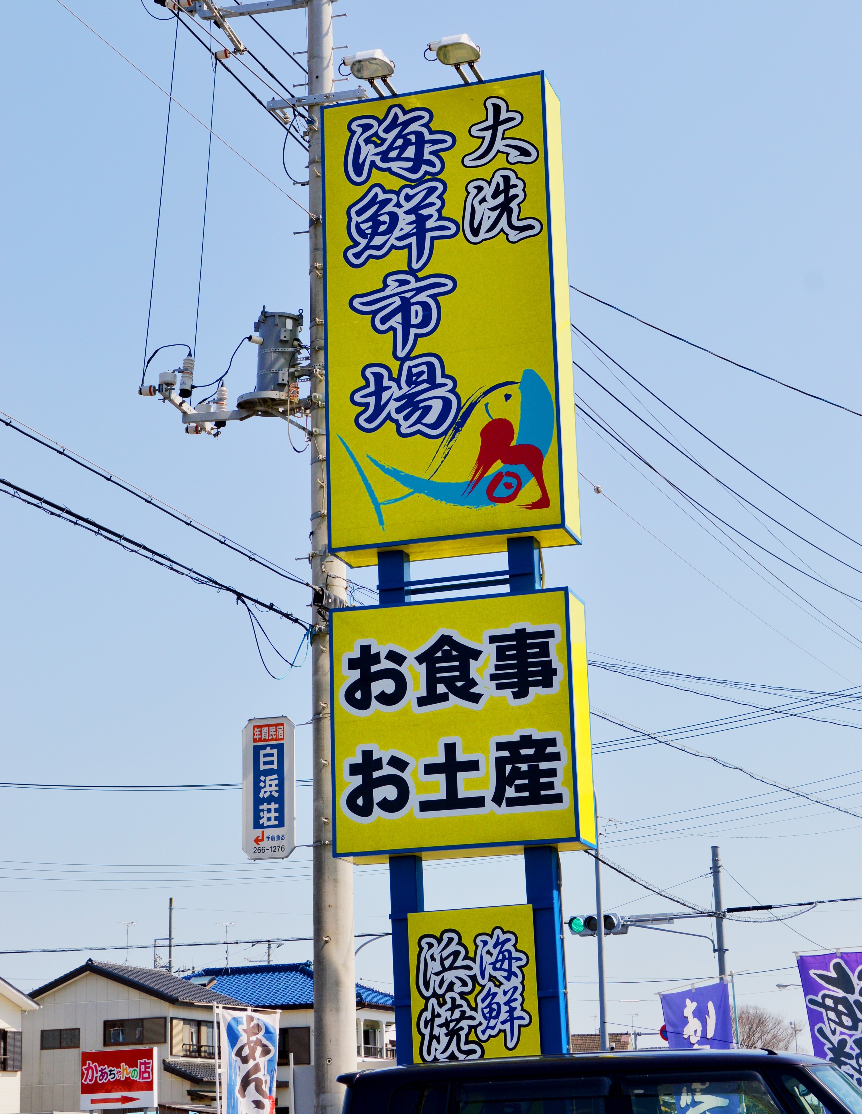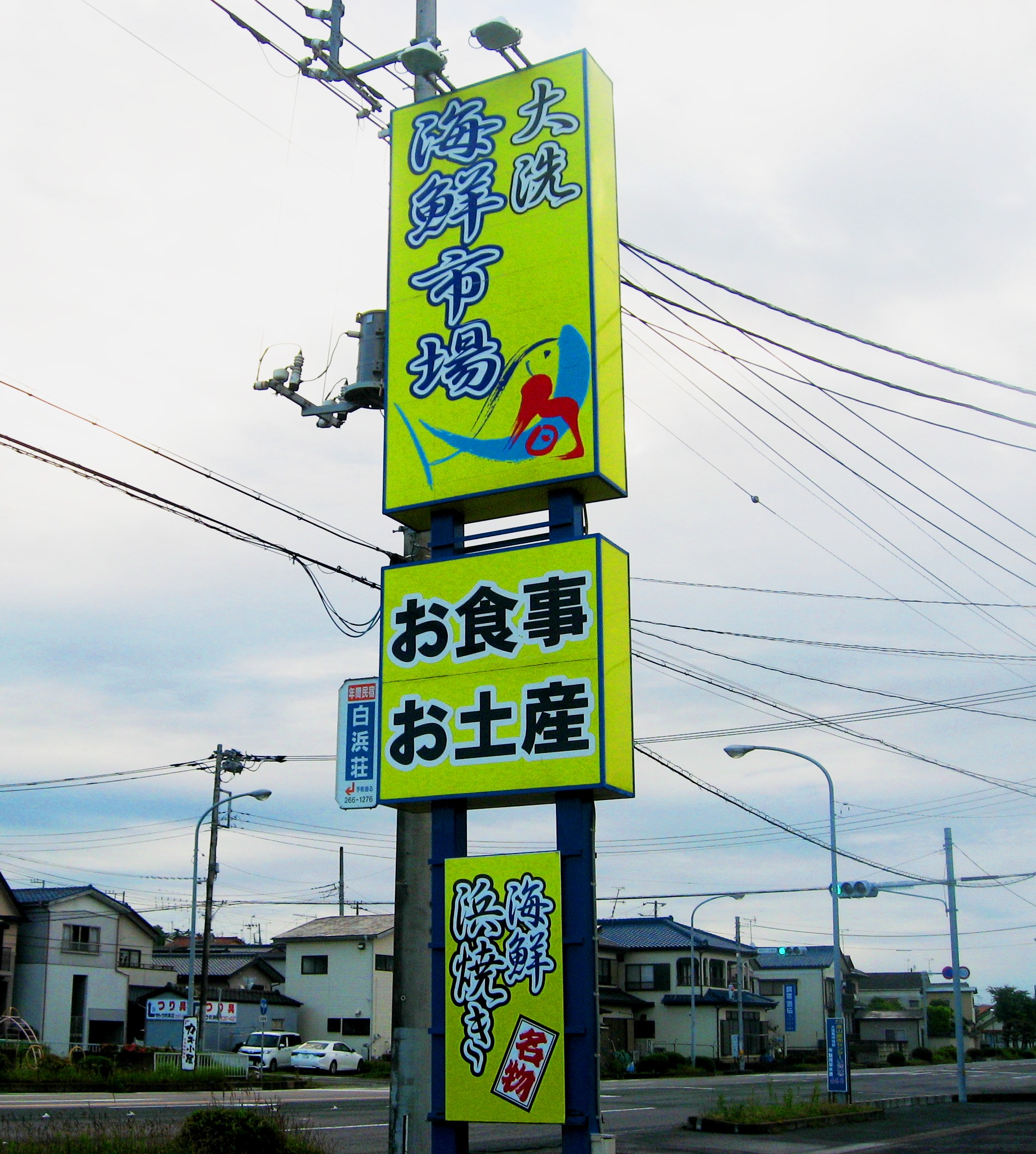 大洗にお越しの際は、黄色い看板が目印の大洗海鮮市場へ是非お立ち寄り下さい!