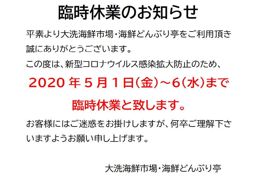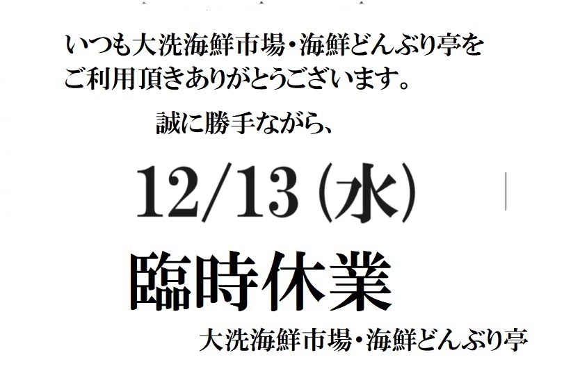 いつも大洗海鮮市場・海鮮どんぶり亭をご利用頂きありがとうございます。