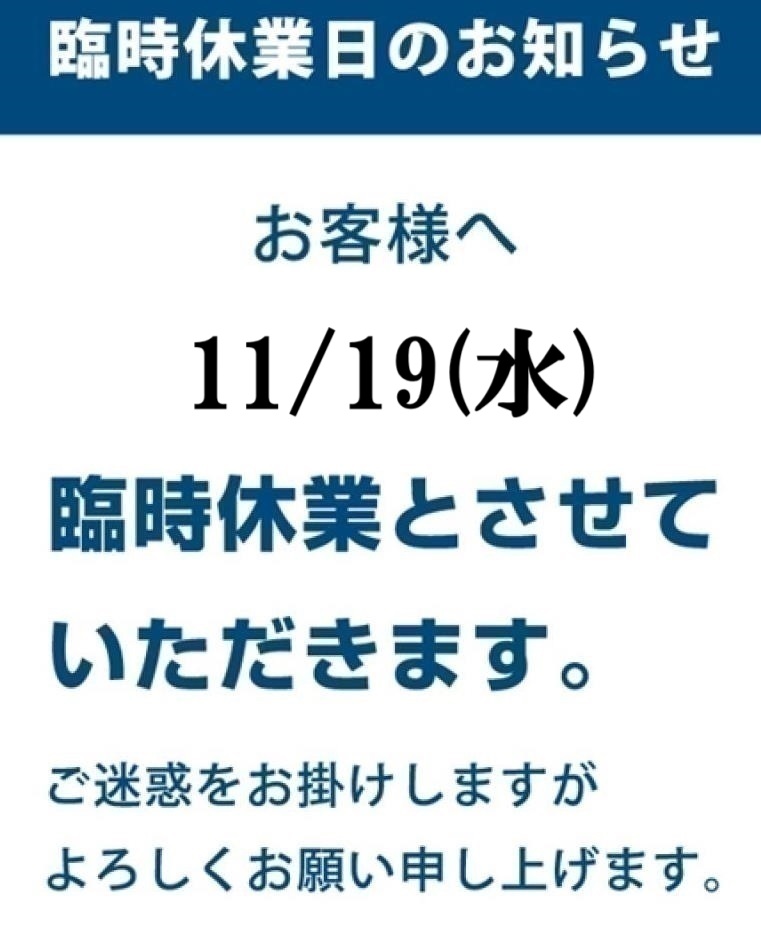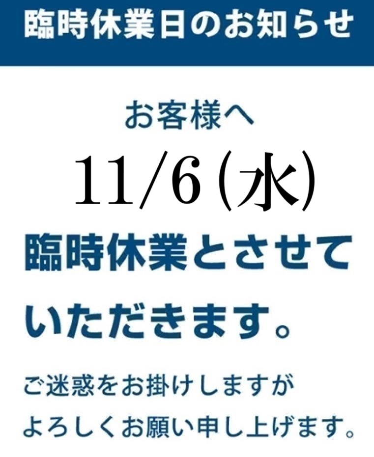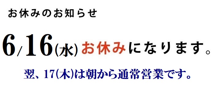 大変申し訳ございませんが、6/11(水)は臨時休業とさせて頂きます。