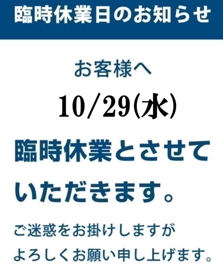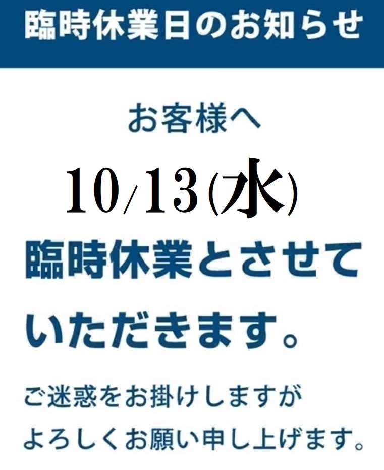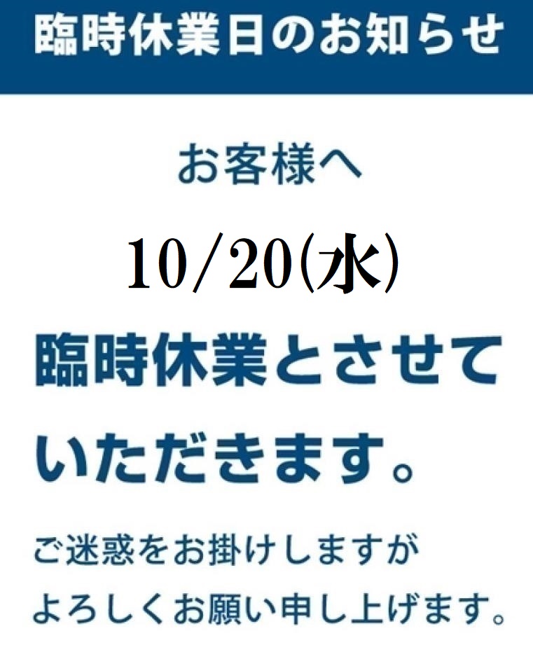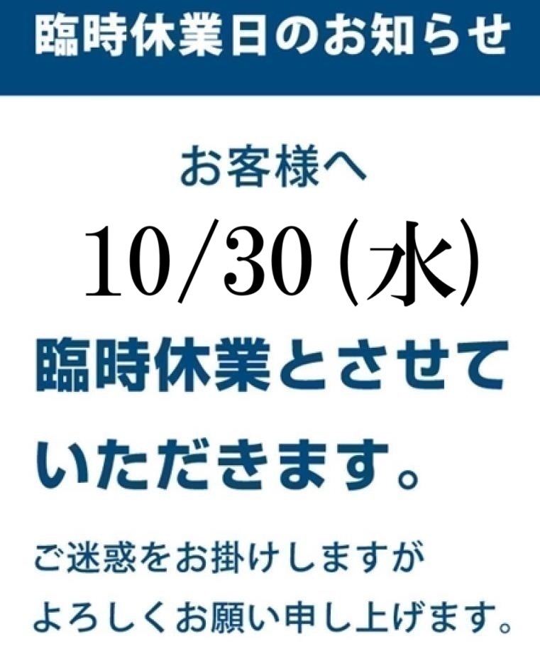 10月スタートの1(水)は臨時休業とさせて頂き...