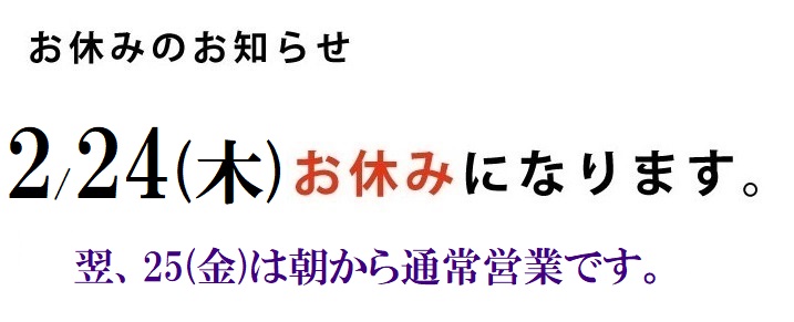 大変申し訳ございませんが、ちょっと一息ついて、9/24(水)は臨時休業とさせて頂きます。